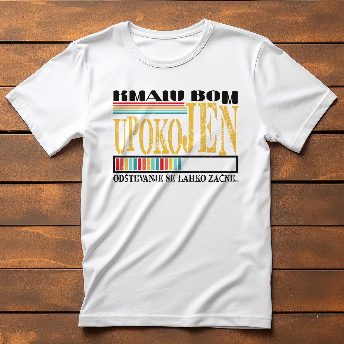 Odštevanje do svobode je uradno začeto!Majica s prelepo večbarvno grafiko in velikim, vesel napisom: "KMALU BOM UPOKOJEN, ODŠTEVANJE SE LAHKO ZAČNE"