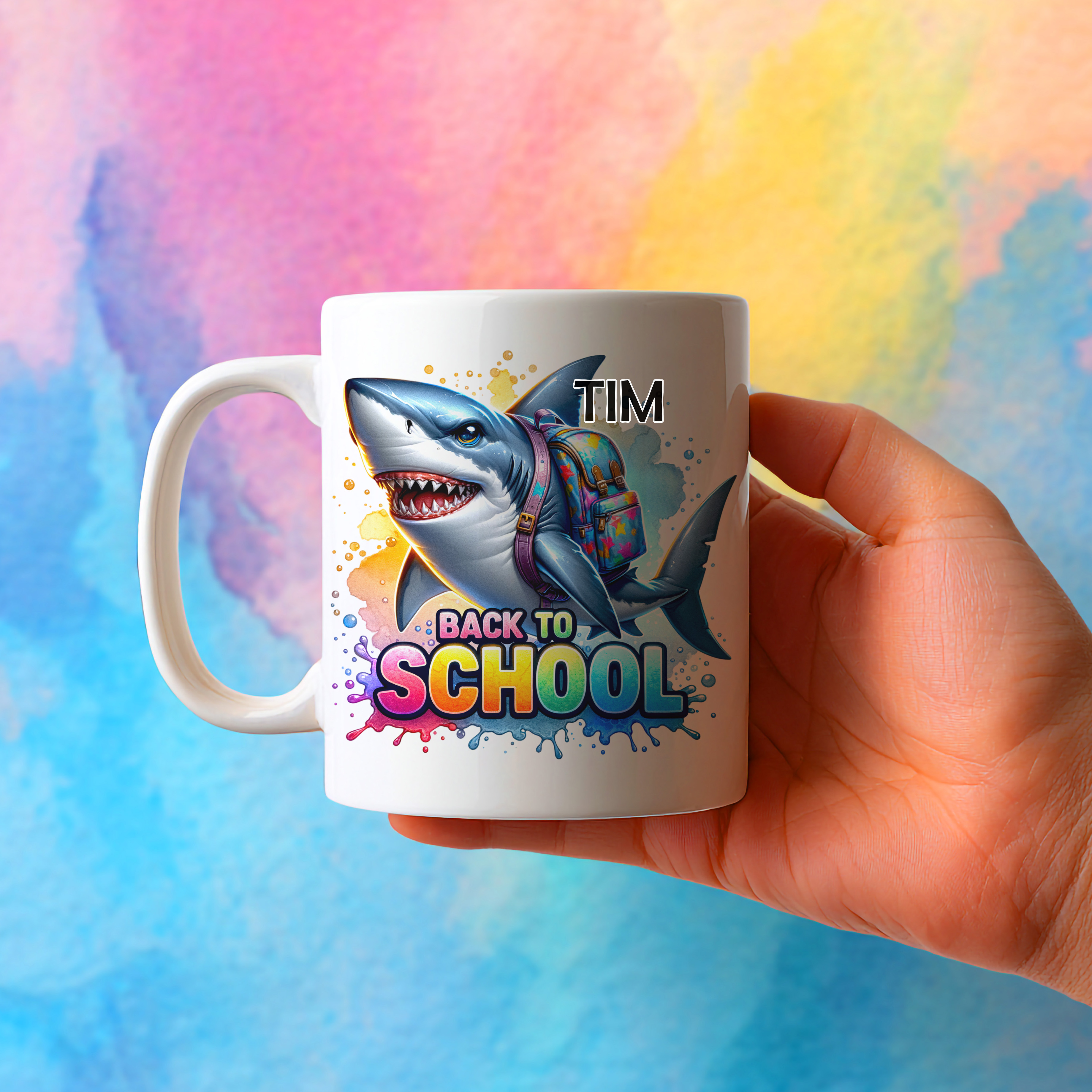 Vsaka šalica v tej kategoriji ima prelepo, barvito grafiko (živali, mavrice, srčki, šolske stvari, super motivi …), ki jih otroci obožujejo. V sredini spodaj ali na vrhu je velik, vesel napis z tvojim imenom in razredom, ki ga izbereš sam (npr. "Tim – 2. razred", "Mia – 3. a", "Luka – 1. b", "Neža – 4. razred" …).
